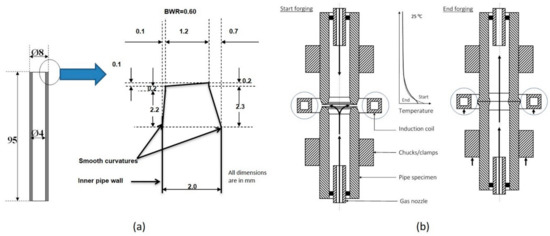 Figure 4 shows the temperature prior to the forging step at different distances from the mating surface along the longitudinal axis of the pipe. These temperatures were measured by heating a specimen to different forging temperatures while measuring the temperature with thermocouples fixed at distances of 0.5, 3, 5 and 7 mm from the mating surface. The Ac