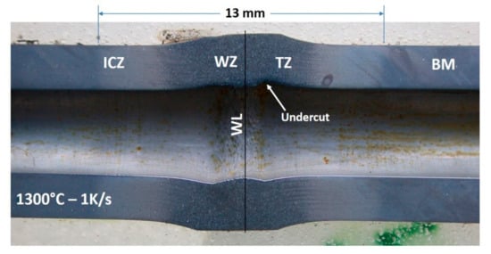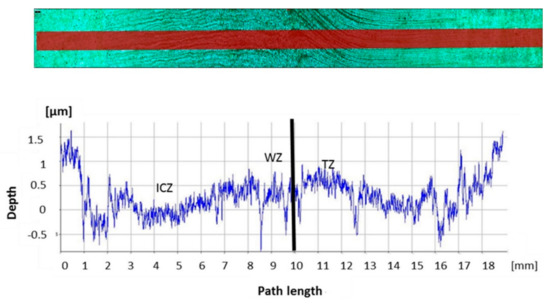 Figure 3 can be divided into three different zones, i.e., the weld zone WZ, the transition zone TZ and the intercritical zone ICZ. WZ is the zone where the highest temperatures and strains were involved. The weld line is located in the middle of the weld zone, but it cannot be seen, neither in