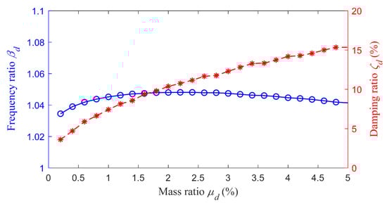 where βd = ωd/ωT is the frequency ratio, and ζd stands for the damping ratio. ωd denotes the frequency of the TMD, while ωT is the frequency of the target mode.