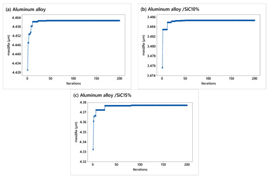 | MinRa (μm) | MaxMRR (mg/min) | MinRa (μm) | MaxMRR (mg/min) | MinRa (μm) | MaxMRR (mg/min) | |