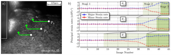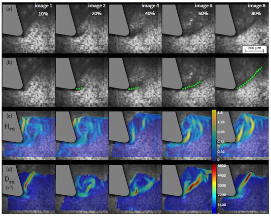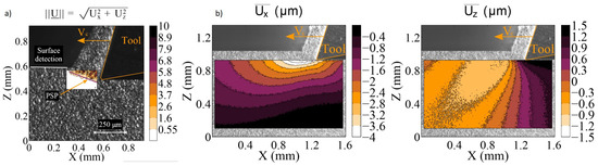 The displacement field measurement provide quantitative data that help to predict the strain, strain rates, stress, and surface integrity [24,25]. In addition, local data measurements enable enhancing and validating numerical models that could better describe the thermo-mechanical load at the local scale.