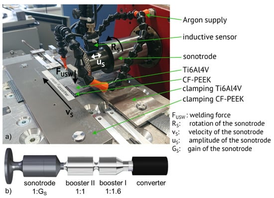 - Magin, J.; Balle, F. Solid state joining of aluminum, titanium and their hybrids by ultrasonic torsion welding. Mat. Wiss. Werkst. 2014, 45, 1072–1083. [Google Scholar] [CrossRef]