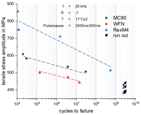 - Beck, T.; Kovacs, S.A.; Ritz, F. VHCF Behavior and Word Hardening of a Ferritic-Martensitic Steel at High Mean Stresses. Key Eng. Mater. 2015, 664, 246–254. [Google Scholar] [CrossRef]