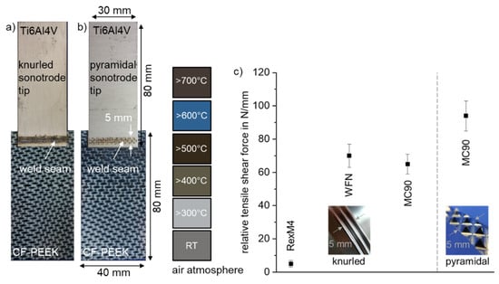 3.4. Sonotrode Suitability for Ultrasonic Welding of Ti6Al4V to CF-PEEK