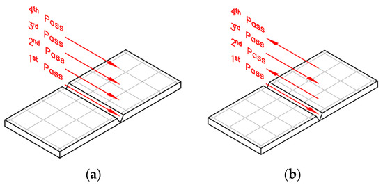 Multipass welding sequence: (a) single orientation and (b) alternated orientation.
