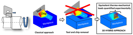 An alternative approach, proposed by [23], consists of modelling the residual stress generation by removing the chip formation and replacing it with equivalent thermomechanical loadings (Figure 1).