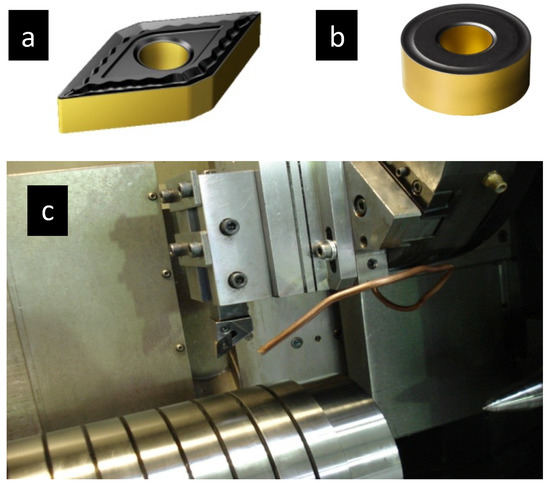 (a) DNMG insert—(b) RNMG insert—(c) Overview on the instrumented experimental set-up.
