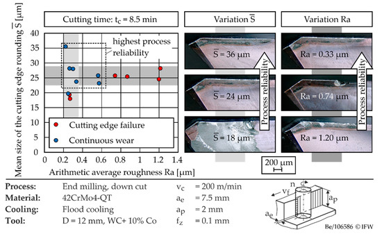 Figure 8 shows the wear behavior of coated cutting tools as a function of the mean size of the cutting edge rounding and the arithmetic center roughness value.