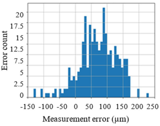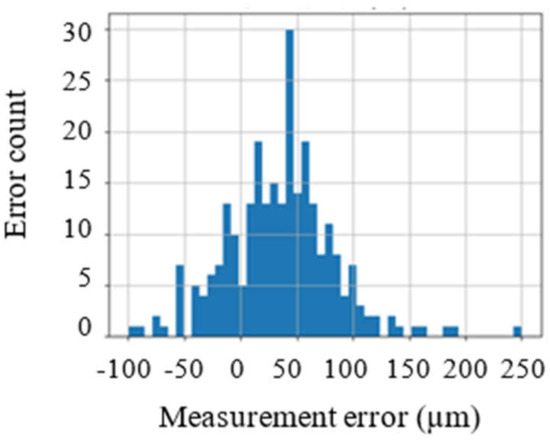 After that, the height data acquired by SFS was contrasted to the laser scanner data and the relative measurement errors were obtained. Basic error statistics are shown in Table 5 and the corresponding error distribution histogram is shown in Figure 8.
