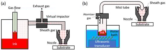 Schematics of (a) CS and (b) DOD inkjet printing.