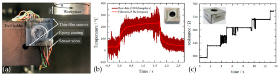 46]. The experimental setup with the in-tool-integrated thin film sensors is presented in