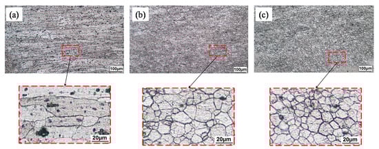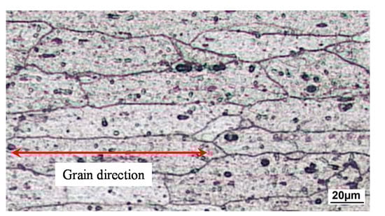 The STA heat treatment tends to form a supersaturated solid solution phase, and the precipitated particles act as obstacles against dislocation movement, resulting in a higher strength of the weld area. It also generates more refined grains within the HAZ. This further improved the strength of joints after STA post-processing, as shown in Figure 6d. Figure 9 depicts microstructures of the STA heat-treated and as-welded samples within the HAZ in the advancing side of the joint, in which the average grain size of the as-welded FSW joint and the heat-treated joint were found to be 96 and 64 μm, respectively.