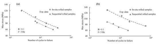 S–N curves of in situ rolled (IR) and sequential rolled (SR) for FSW joints: (a) ball size of d = 6 mm; (b) ball size of d = 8 mm.