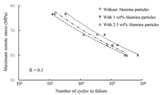 Figure 15 presents S–N curves for as-welded FSSW joints and those joints with deposited alumina powder of 1 and 2.5 wt.% in the nugget zone.