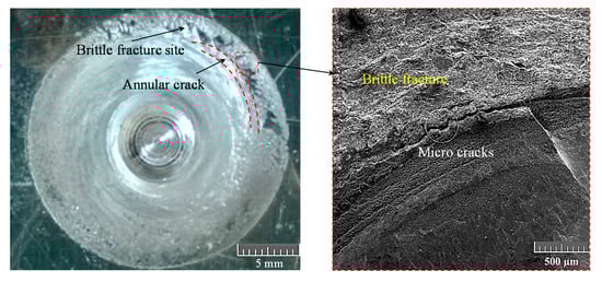 Inclusion of alumina particles in the NZ affected the cracking manner of FSSW joints undergoing fatigue loading cycles. FSSW joints containing 1 wt.% alumina particles experienced circumferential cracks followed by either a crack propagation along sheet joints or partial nugget pull-out and lap-shear failure. The samples containing 2.5 wt.% alumina particles experienced lap-shear failure or nugget pull-out in the upper sheet depending on the applied load level. Figure 19 depicts a typical lap-shear failure caused by propagating annular cracks followed by a brittle fracture.