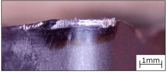 Microscope image of a representative cutting tool insert after reaching its end-of-life.