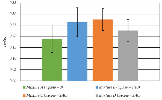 Frequency sweep testing ranging from 0.1 to 100 rad/s was used for the measurement of these moduli and loss tangent parameters. All measurements were conducted at 25 °C. At least five test runs were performed to characterize the rheological properties of each mixture (for each composition). In this paper, the average of the five test runs is reported for each mixture.