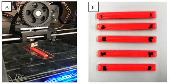 3D printing of DIN EN ISO 75 samples. (A-while printing, B-Printed Samples).