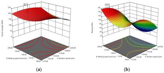 Solid-state welding joints are used to reduce problems of distortion, cracking, and metallurgical changing. Friction stir welding (FSW) generates welding temperatures lower than the melting point temperature of materials, resulting in less gain changing and favorable joints after material welding [5,6,7,8,9,10]. Therefore, the friction stir welding process produces a welded seam with sufficient mechanical properties and structure [11,12]. Several works have studied the relative process parameters of mechanical properties and metallurgical structure. The parameters measure influences on welded seam quality, including rotation speed, welding speed, tilt angle, tool geometries, and the ratio shoulder to pin diameter (D/d), that affect heat generation, material deformation, material flow, material mixing, defects, strength, and metallurgical changing in weld line structure [13,14,15,16,17,18,19]. The parameters of the friction stir welding process have been studied by optimized methods such as factorial design [20], Taguchi design [21,22], grey relational method [23,24], response surface method [13,25], and combined methods [26,27,28,29]. The optimized methods can effectively control the mechanical property and defects of the weld line [30,31,32]. The weld line performance depends on many properties, such as tensile strength, hardness, impact, corrosion resistance, etc. A survey of the literature found that several kinds of research have emphasized that the main property target is tensile strength, in that it affects weld line usability performance. Consequently, tensile testing is used for quality measurements of weld line structures, being the main performance indicator of materials [33]. Thus, tensile strength has not been neglected in considering the mechanical property of the weld line. The hardness property is the second mechanical property of interest to study. Both hardness and tensile properties have a direct relationship with the material’s exhibited high hardness value, and the tensile strength will increase in value, according to the reports of Khodabakhshi and Gerlich [34], and Chen and Cai [35]. Thus, hardness and other mechanical properties are ignored in the many studies shown in Table 1. Moreover, the mechanical property study of weld seams depends on weld line usability. However, bending is the weld line mechanical property that has not been studied for quality improvement in the automotive or marine industries. Therefore, the bending property should be studied together with the other properties. Several studies on aluminum alloy welding have presented optimization of the multi-objective strategy for many properties together in one welding condition because it provides desirable property parameters for the target requirement [29,36,37,38].