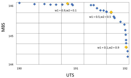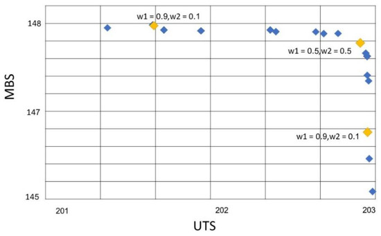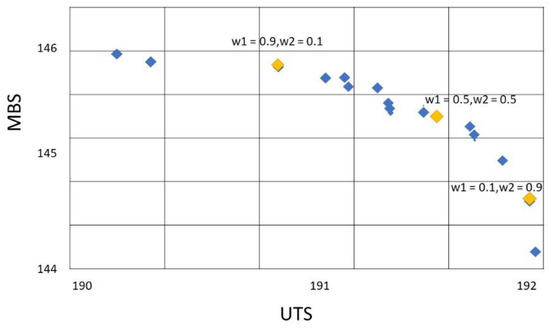 RTM, TTM, and B-TTM use the weighted sum objective function to select the survival track for subiteration + 1 and use the Pareto front procedure to collect the nondominated solution. The number of Q (maximum number of subiterations) is set to 50–100 iterations as suggested by Pitakaso et al. [51]. After the Pareto front is obtained, TOPSIS selects the most promising set of parameters to test the performance of the heuristics compared with the D-optimal solution.
