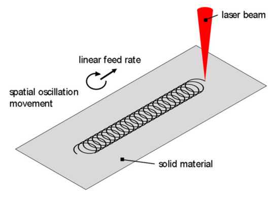 Oscillatory motion is generated by the superposition of two periodic, orthogonal motions. Possible oscillating movements are linear (one-dimensional movement transverse to the feed direction), circular, elliptical, and octagonal. The use of circular oscillation has gained acceptance in laser beam micro welding because experiments have shown that molten pool ejections are reduced compared to other forms of oscillation and conventional welding [22,23,24].