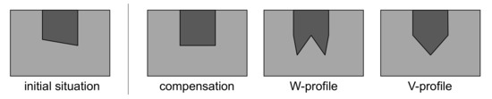In order to obtain further degrees of freedom in the production of components, the variable adjustment of the seam cross-section is also considered. The generated cross-section profiles with W- and V-shape are shown in Figure 8.