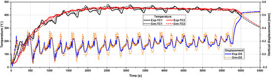 Comparison between simulated and measured thermo-mechanical results of the block.