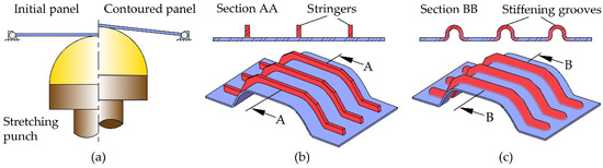 Strengthening the panels produced by stretching by means of individual stringers (Figure 1b) that are welded, riveted or rigidly fastened to their surfaces is a necessary and commonly used procedure to allow panels to withstandg the tension, compression, bending, shear and torsion efforts that may be applied to them in service.