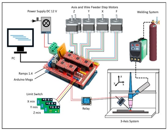 The WAAM system consists of mechanical and electrical components, as well as dedicated software. The main components of the WAAM system are depicted in Figure 1.