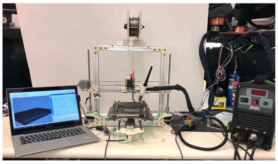 In this study, a low-cost wire-arc additive manufacturing (WAAM) system is designed that offers an alternative solution to develop and repair high-value metallic components. The applications include repair and manufacturing of parts such as fittings, implants, heat exchangers in aviation, automobile and medical industries [24]. The system incorporates an open-source 3D printer and gas tungsten arc welding (GTAW) process. The system costs around $1000 and includes open source fused deposition modeling (FDM) 3D printer parts, microcontroller, TIG welder, and specially designed and produced parts, such as a torch holder, among other components. The computer and gas container were excluded from this cost estimate. This design approach eliminates the use of expensive equipment, such as a robotic arm, thus reducing the price of the machine drastically. This low-cost AM machine also implements an open-source architecture.