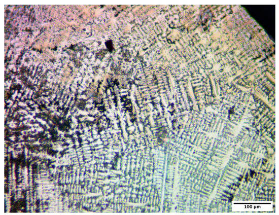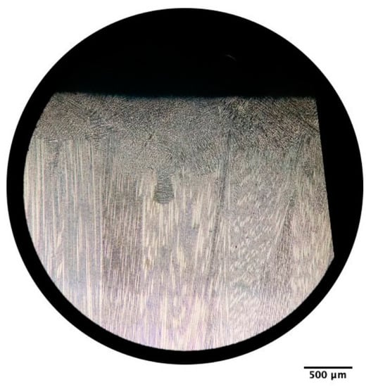 The longitudinal metallographic section of the 30-layer deposition of Inconel 718 alloy are given in Figure 9 and Figure 10, showing typical columnar microstructure. The microstructural analysis showed that the designed system was able to produce a simple wall with promising properties. Defects, such as oxidation between layers, crack, and inclusion, were not observed.