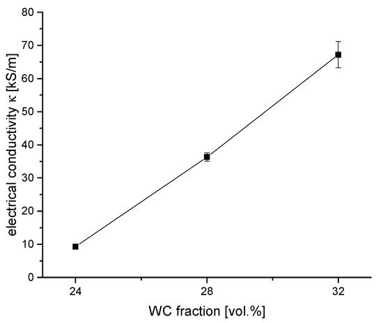 - Gommeringer, A.; Schmitt-Radloff, U.; Ninz, P.; Kern, F.; Klocke, F.; Schneider, S.; Holsten, M.; Klink, A. ED-machinable Ceramics with Oxide Matrix: Influence of Particle Size and Volume Fraction of the Electrical Conductive Phase on the Mechanical and Electrical Properties and the EDM Characteristics. Procedia CIRP 2018, 68, 22–27. [Google Scholar] [CrossRef]