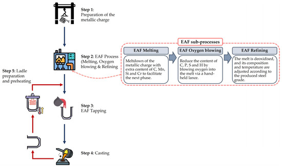 - Cavaliere, P. Electric Arc Furnace: Most Efficient Technologies for Greenhouse Emissions Abatement. In Clean Ironmaking and Steelmaking Processes; Cavaliere, P., Ed.; Springer International Publishing: Cham, Switzerland, 2019; pp. 303–375. [Google Scholar] [CrossRef]