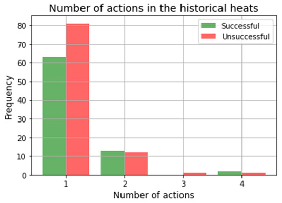 Number of actions taken in the heats of the historical database and how many of them achieved the target state.