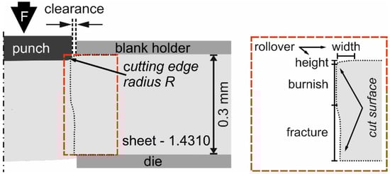 - Sachnik, P.; Hoque, S.E.; Volk, W. Burr-free cutting edges by notch-shear cutting. J. Mater. Process. Technol. 2017, 249, 229–245. [Google Scholar] [CrossRef]