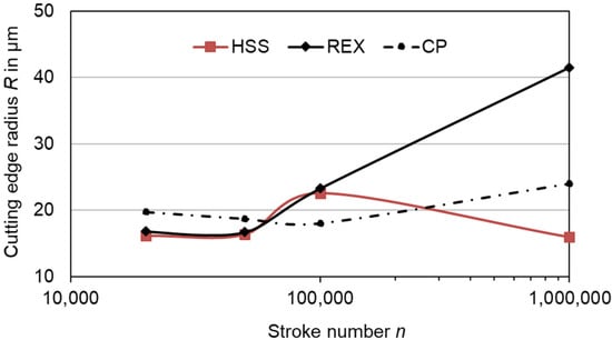 - The evolution of the cutting edge radius varies for different punch materials. Depending on the number of strokes and the tool material, it can increase or decrease due to different wear mechanisms. This influences the cutting edge quality significantly.