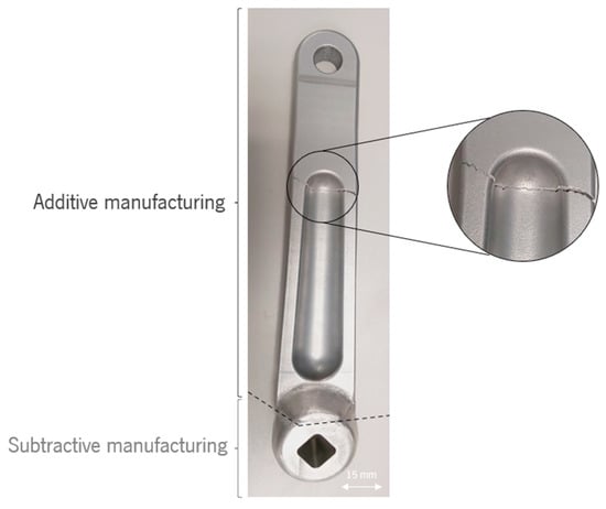 Considering these mechanical results, an aluminium crankset (Figure 7), which is a complex and functional part, was developed and produced by conventional subtractive manufacturing and by hybrid manufacturing to validate the application of additive-manufacturing technologies for the restoration of parts.