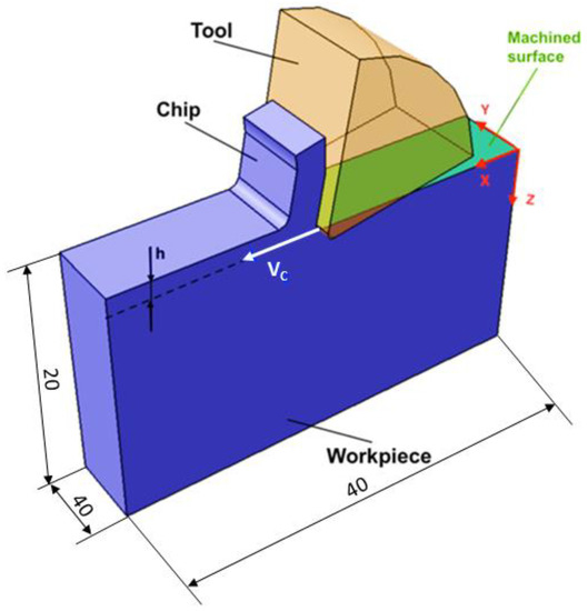 - Kandráč, L.; Maňková, I.; Vrabel’, M.; Beňo, J. Finite Element Simulation of Cutting Forces in Orthogonal Machining of Titanium Alloy Ti-6Al-4V. Appl. Mech. Mater. 2014, 474, 192–199. [Google Scholar] [CrossRef]