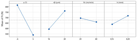 Influence of the cutting parameters on the thrust force (Ft) based on all cutting conditions.
