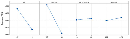 SRSL (MPa) = −202.623 – 13.188 γn (°) – 14.352 rn (µm) + 0.257 Vc (m/min) + 414.667 h (mm)