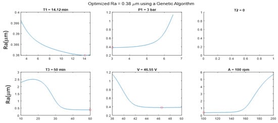 - The optimization algorithm gives the conditions to be applied to improve, roughly by 60%, the surface roughness.