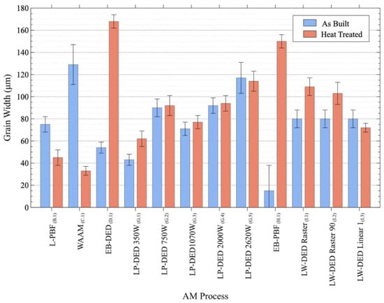 Direct comparison of AM process grain widths for as-built and heat-treated (stress relief, HIP, solution) components.