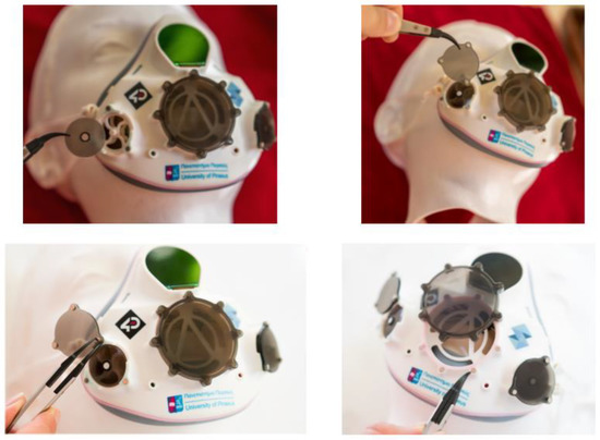 Subsequently, the assembly of the mask is performed. The assembly involved the attachment of various MJ parts on the main body, such as the attachment of exhaust valves and filters, is presented in Figure 7. Exhaust valve and filter sections incorporate neodymium magnets to facilitate removal of the corresponding components for sterilization or replacement.
