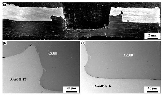 - Mohammadi, J.; Behnamian, Y.; Mostafaei, A.; Izadi, H.; Saeid, T.; Kokabi, A.H.; Gerlich, A.P. Friction Stir Welding Joint of Dissimilar Materials Between AZ31B Magnesium and 6061 aluminum Alloys: Microstructure Studies and Mechanical Characterizations. Mater. Charact. 2015, 101, 189–207. [Google Scholar] [CrossRef]
