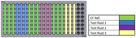 Taps from the same batch were selected to perform a test on a CF alongside the CFref in the same workpiece. For each CF up to 4 holes were tapped using the same tool. This was repeated twice with each CF, but the tap was replaced with a new one in each repeat trial. The CFref was tapped alongside each of the nine CFs, and this required a total of 6 taps for each CF. On the day of testing, the neat CF was diluted, and a volume of 0.37 mL was introduced to each hole using a syringe, to prevent air bubbles from forming.
