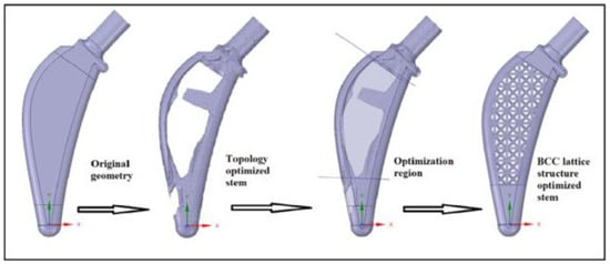 From the authors’ perspective, reviewing the literature related to the biomaterials shows that most studies discuss Ti and its alloys in making medical implants, such as in [,]. While few studies discuss structural defects in AM implants, such as in [,], and for design methodologies for implant AM, there are very few researchers studying the topology optimization of implants [,]. However, there are relevant studies available related to the involvement of AM for making implants using Ti and alloys [,].