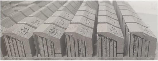 Materialise Magics and EOS Print were used to generate the various support structures and perform the final slicing jobs. Figure 3 illustrates the printed outcome after the removal of the unmelted powder. In total, 68 out of 90 specimens were printed successfully, while the remaining 22 failed during the fabrication process due to blade crashing. It was also observed that all of the non-printed specimens belonged to case 0 (Level 1—Overhang Angle 0°). Regarding the support parameters, X, Y Hatching had the most significant effect on the non-printed specimens, since 16 out of 22 consisted of the maximum hatching distance (2.5 mm). The non-printed specimens were not excluded from this study and were considered in the analysis and optimization as printing failures.