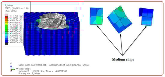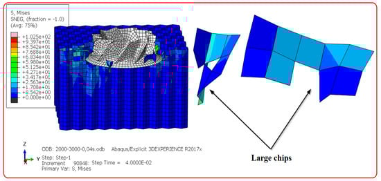 - The proposed numerical model is able to predict the influence of the gap between the two elements of cutting tool on chip size. The obtained results show that the gap between the two components of the cutting tool has a direct influence on the size of the chips so that the large gaps generate large chips and vice versa.