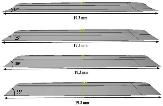 4.4. Effect of the Wedge Angle on the Accrual of Material