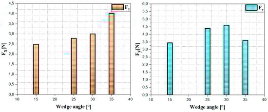 4.5. Influence of the Wedge Angle on the Cutting Forces
